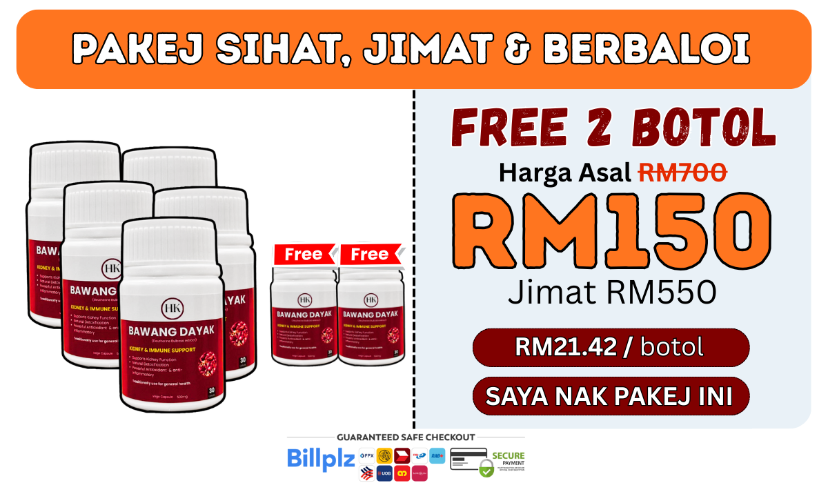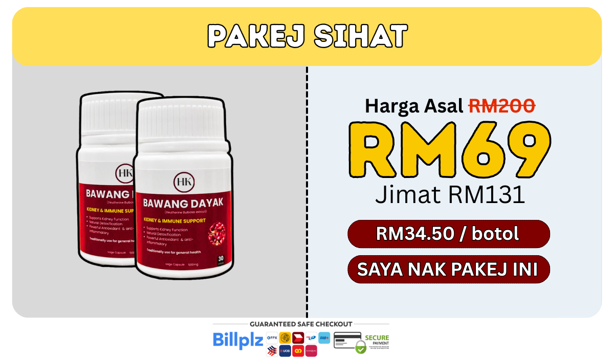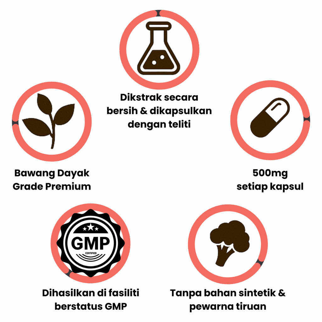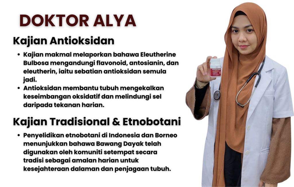 Sebab tu ramai amalkan herba antioksidan seperti Bawang Dayak untuk sokong keseimbangan tubuh.”