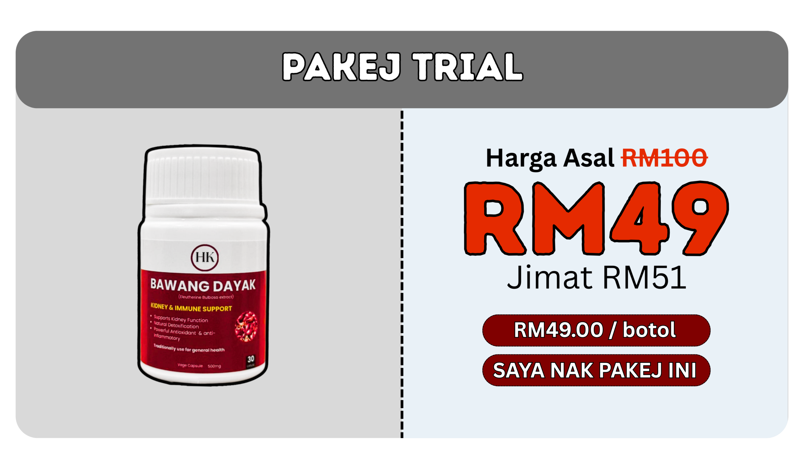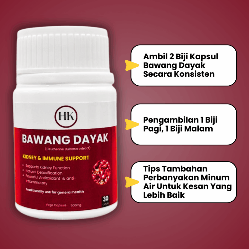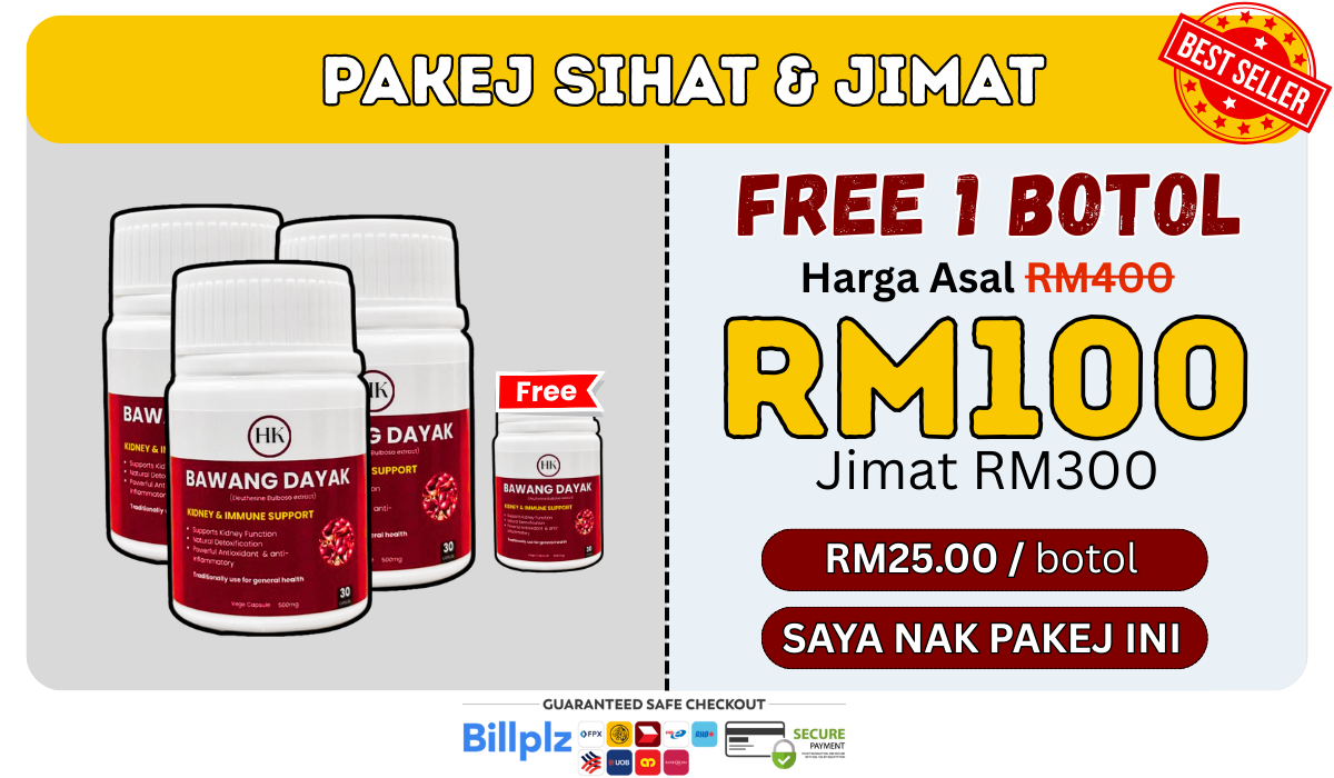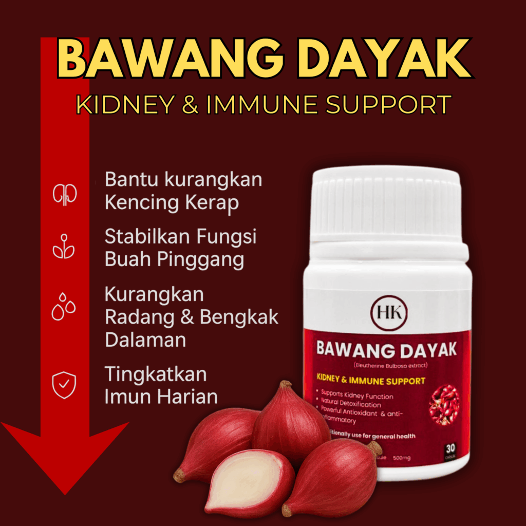Sebab tu ramai amalkan herba antioksidan seperti Bawang Dayak untuk sokong keseimbangan tubuh.”