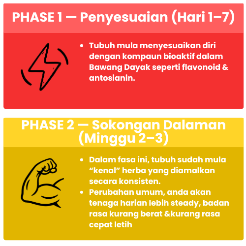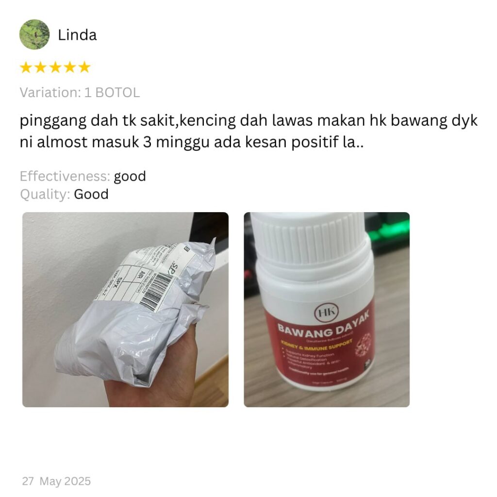 Hasil Konsisten Menggunakan Bawang Dayak dapat bantu Tekanan oksidatif kronik, Keradangan dalaman, Tambah tenaga, Menyokong Tubuh & Kurangkan masalah kencing manis.